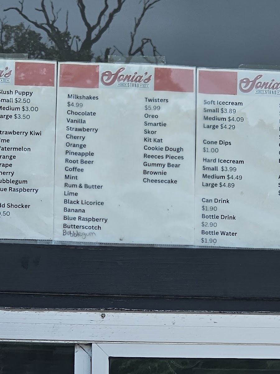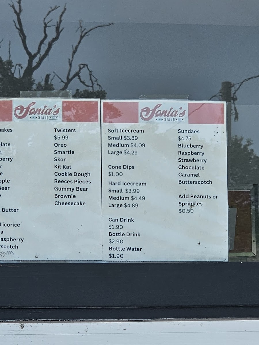 Sonia's Stand Menu